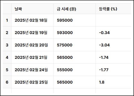 오늘의 국내 순금시세[25.02.25]
