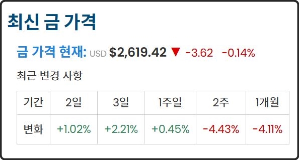 최신 금가격 변동사항