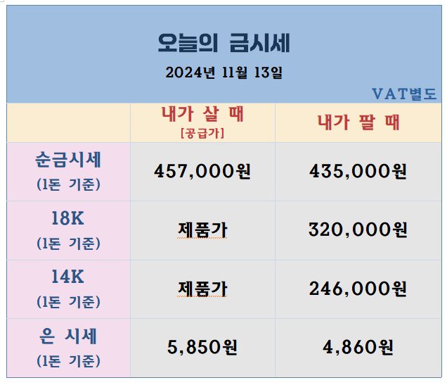 ▣ 오늘의 국내 금시세 [ 24.11.13]