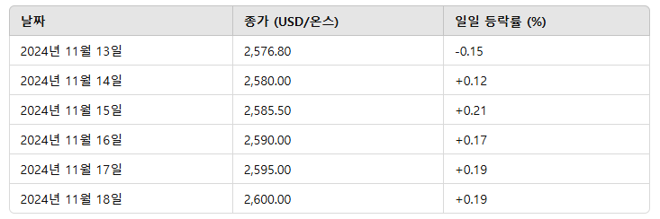 현재 금 시세는 온스당 2,587.40달러로, 전일 대비 25.10달러(0.98%) 상승했습니다.