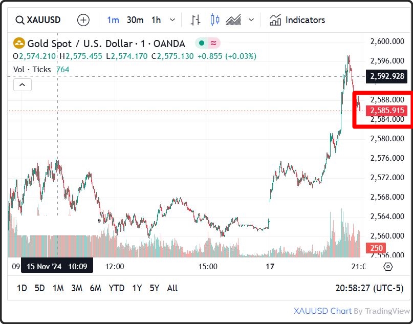 2024년 11월 18일,  국제금시세가 5 거래일 연속 하락세를 보이다 오늘 드디어 반등을 한 모습니다. 금과 관련된 어떤 최신 뉴스가 있는지 정확한 팩트만을 꼭 집어 드리겠습니다.