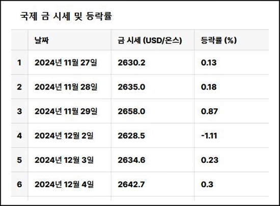오늘의 금시세(24.12.03), 온스당 국제금시세, 국제 금 뉴스 (2) | 2024.12.03 |