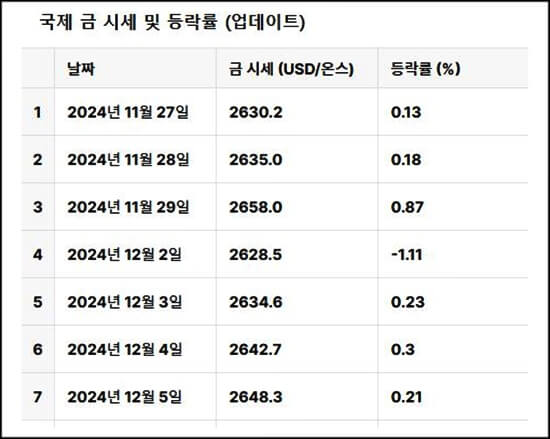 ▣ 국제시세 & 최신 금 뉴스 [ 24.12.05]