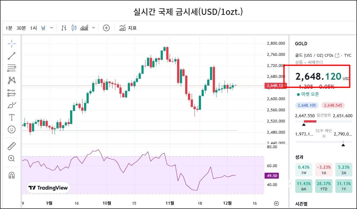 2024년 12월 05일, 국제 금시세와 금시황, 금/은 관련 뉴스를 전해 드리고 있습니다. 오늘의 금시황입니다.