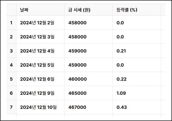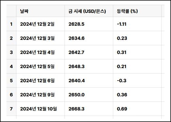 오늘의 금시세(24.12.11),금값 12월 들어 가장 큰 폭 상승, 국제 금시세 (0) | 2024.12.11 |