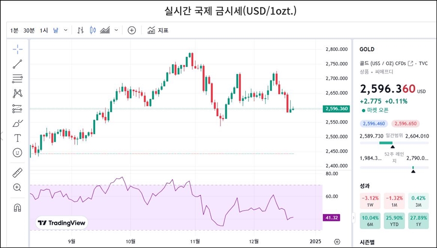 오늘 금 가격이 중요한 지지선($2,590)에서 반등할 경우 추가 상승세로 전환할 가능성이 있습니다.