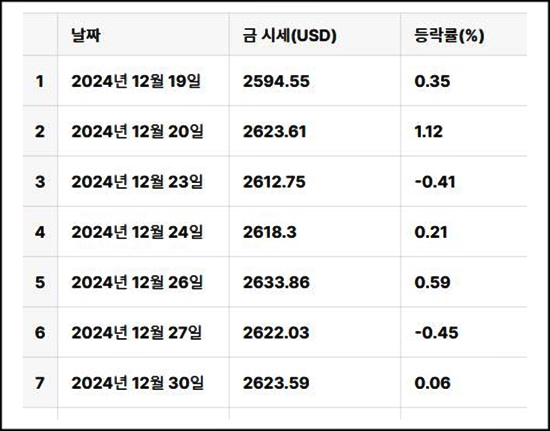 2024년 마지막 거래 주간 금 가격 보합세 예상