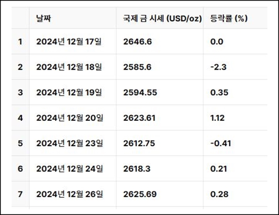 | 오늘의 금시세(24.12.24), 국내 금값 상승, 국제 금/은 시세분석, 뉴스 (4) | 2024.12.24 |