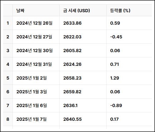 | 오늘의 금시세(25.01.06), 국제금은시세와 분석, 향후 전략 (1) | 2025.01.06 |