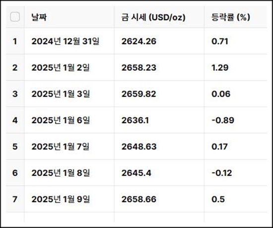 | 오늘의 금시세(25.01.06), 국제금은시세와 분석, 향후 전략 (1) | 2025.01.06 |