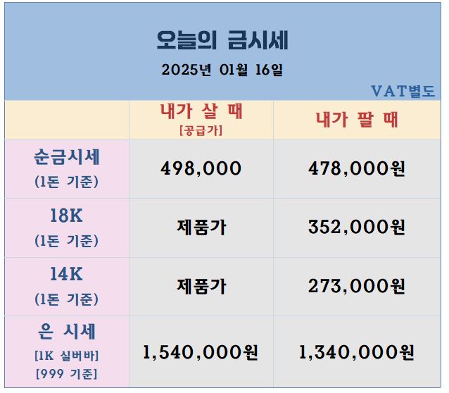 ▣ 오늘의 국내 금시세 [ 25.01.17]