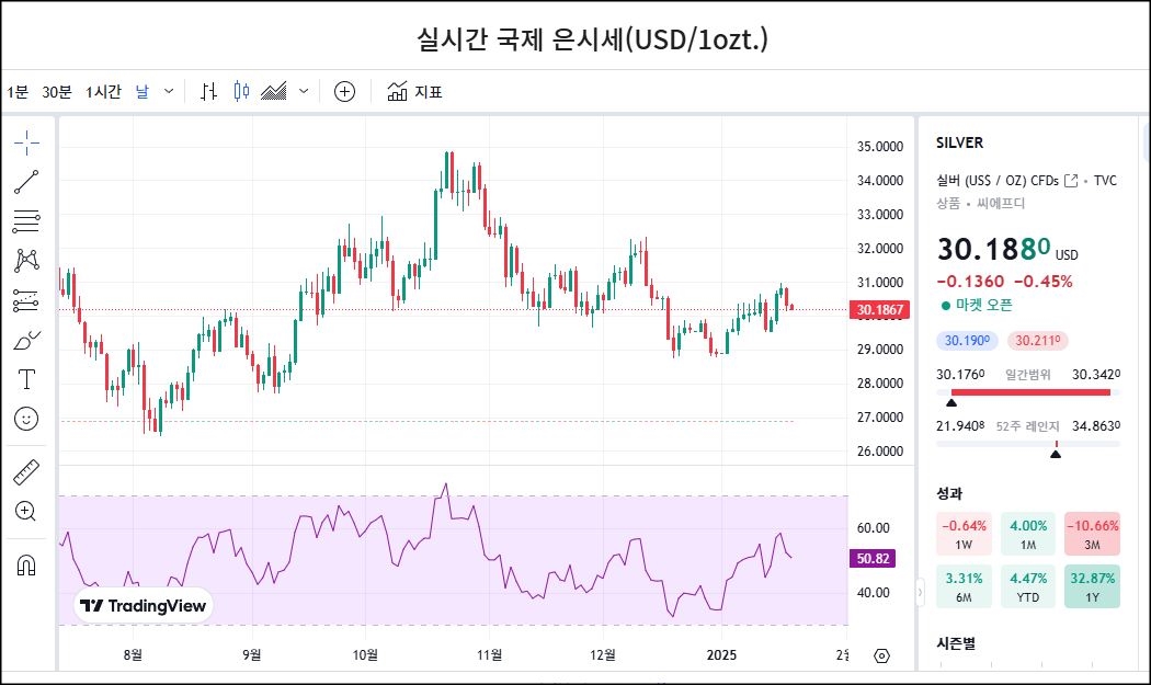 단기적으로 30.50~31.00달러가 저항선, 29.50달러 부근이 지지선 역할을 할 가능성이 높음.