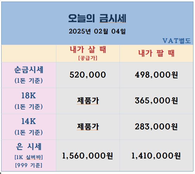 ▣ 오늘의 국내 금시세 [ 25.02.04]
