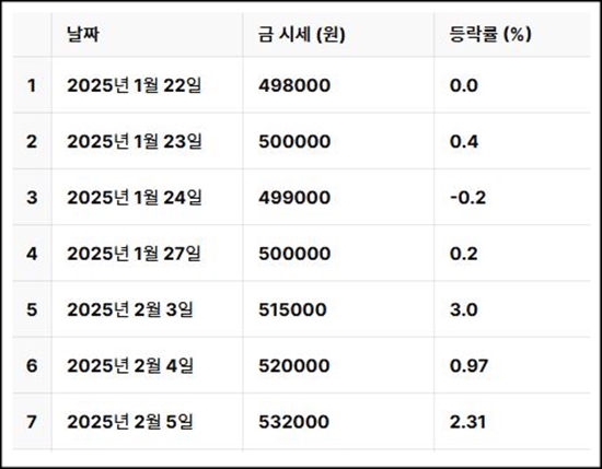 | 오늘의 금시세(25.02.07), 국내금값 다소 안정, 국제금은시세 분석, 전망 (1) | 2025.02.07 |