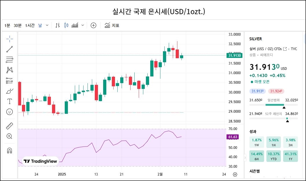 오늘의 국제 은시세[25.02.10]