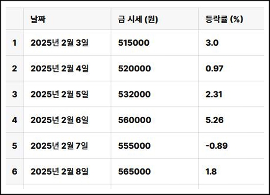 오늘의 국내 금시세[25.02.10]
