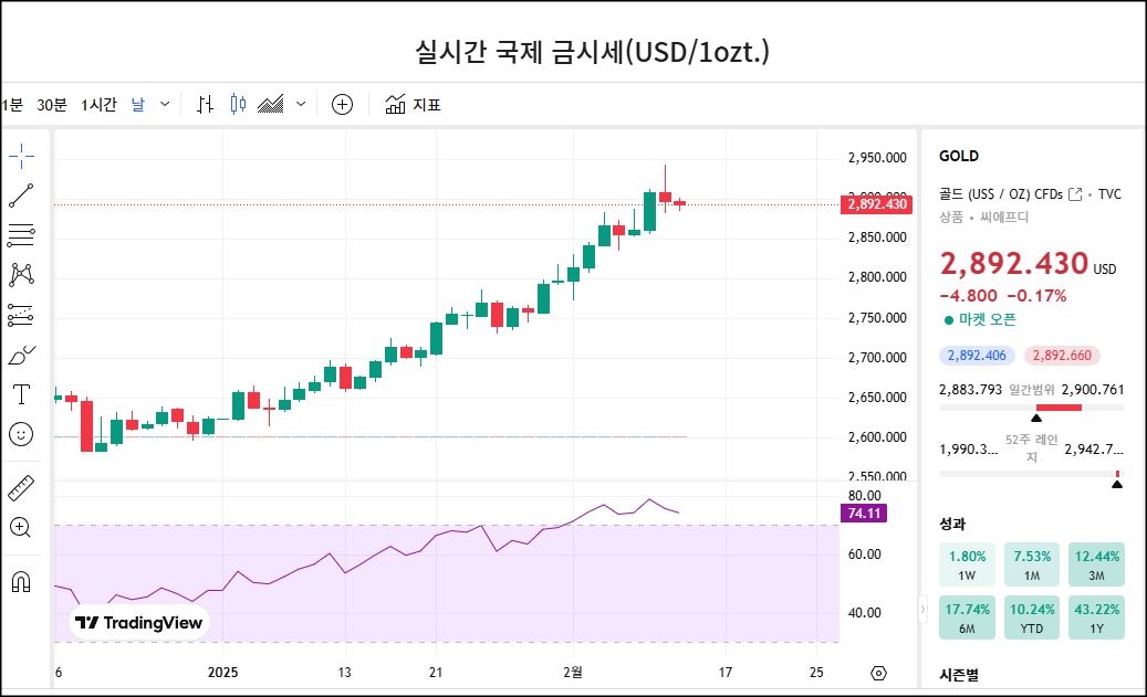 2025년 2월 12일, 국제금시세는 약간 조정을 받았지만, 국내 금 수급이 안 되는 관계로 국내금값은 여전히 상승 중입니다. 국제 금은 시세 분석과 최신 금은 관련 뉴스를 전달해 드립니다.