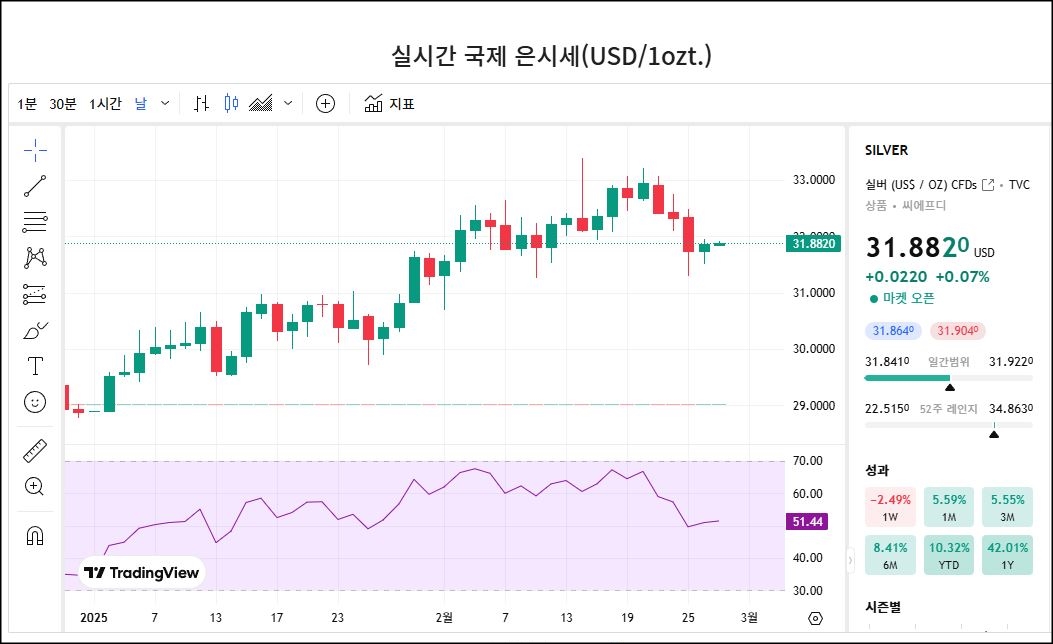 국제 은 시세 분석 (2025년 2월 27일 기준)