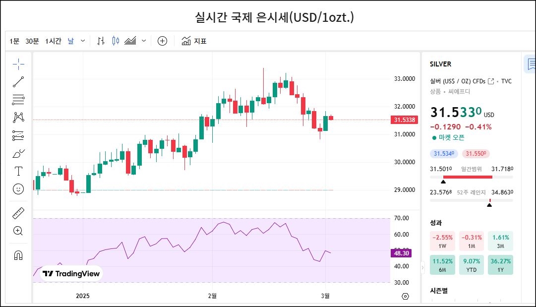 오늘의 국제 은시세[25.03.04]