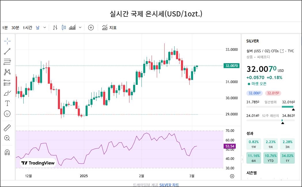 은 가격은 단기 상승세 유지 중, 32.50 USD 돌파 여부가 추가 상승의 핵심.