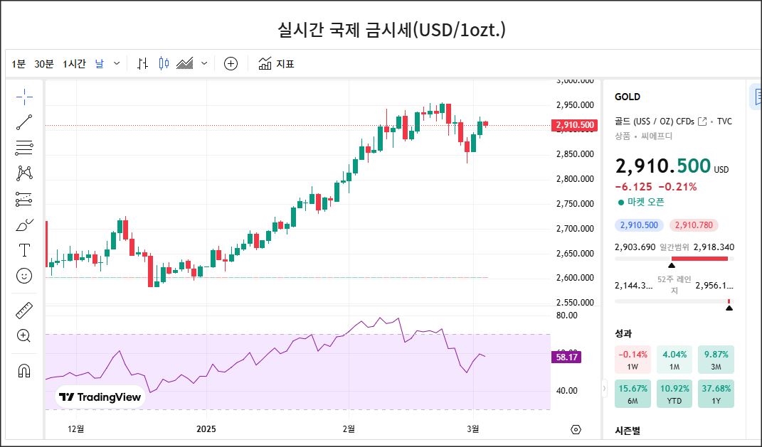 현재 금 가격: 2,910.500 USD