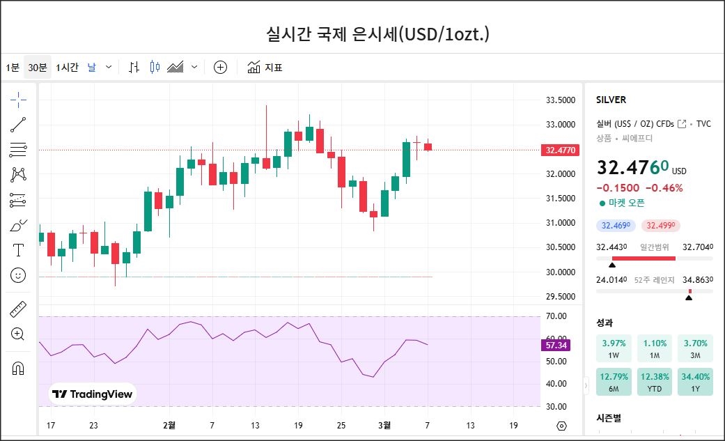 국제 은 시세 분석 (2025년 3월 07일 기준)