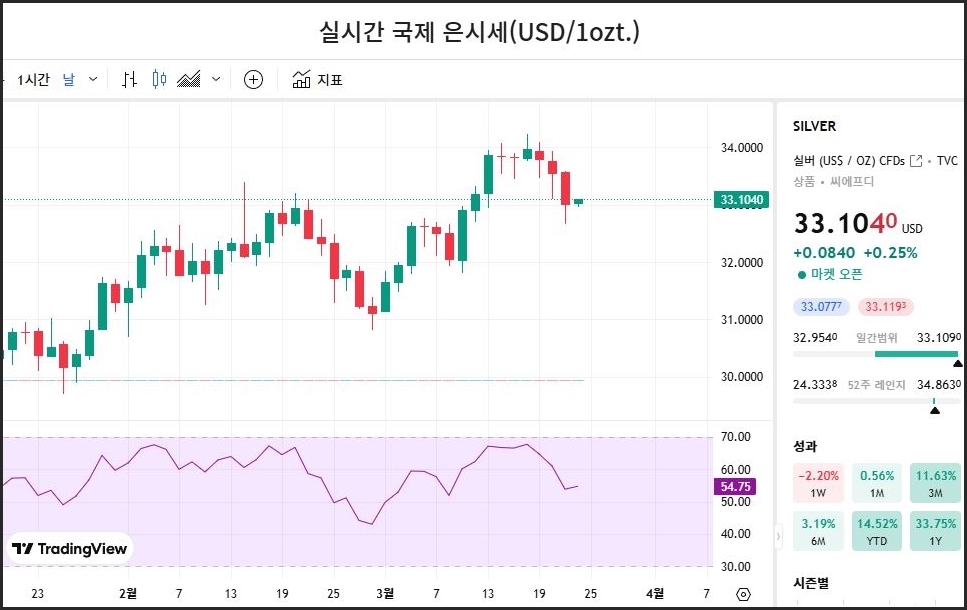 📊 국제 은 시세 분석 (2025-03-24기준)