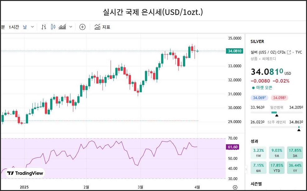 📊 국제 은 시세 분석 (2025-04-01기준)
