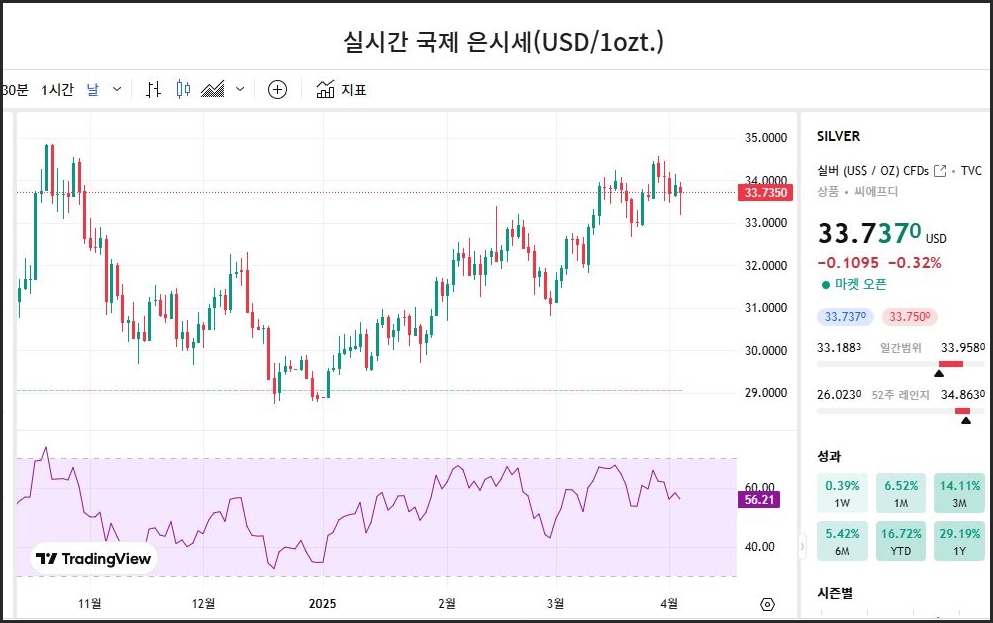 오늘의 국제 은시세[25.04.03]