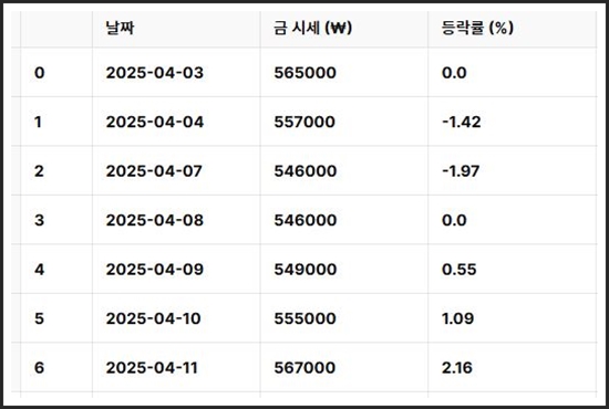 📊 국제 금 시세 분석 (2025-04-11 기준)