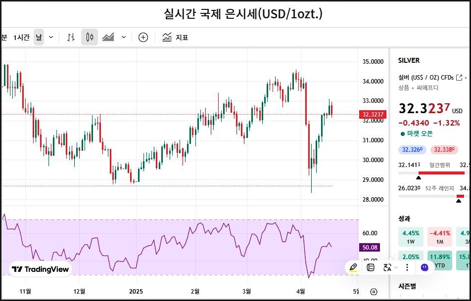 📊 국제 은 시세 분석 (2025-04-17 기준)