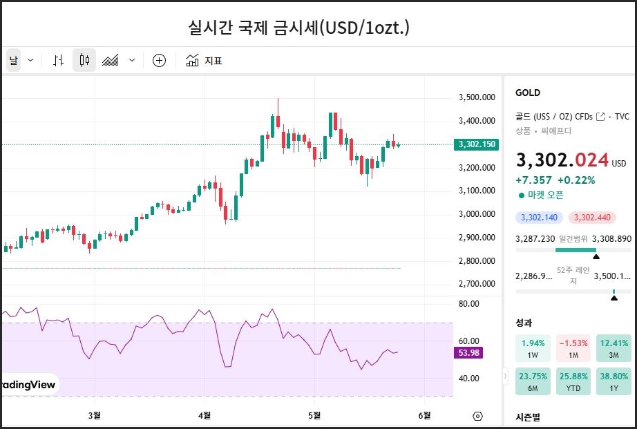 오늘의 국제 금시세[25.05.23]
