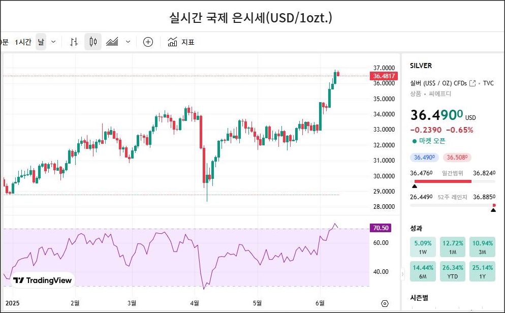 오늘의 국제 은시세[25. 06. 10]