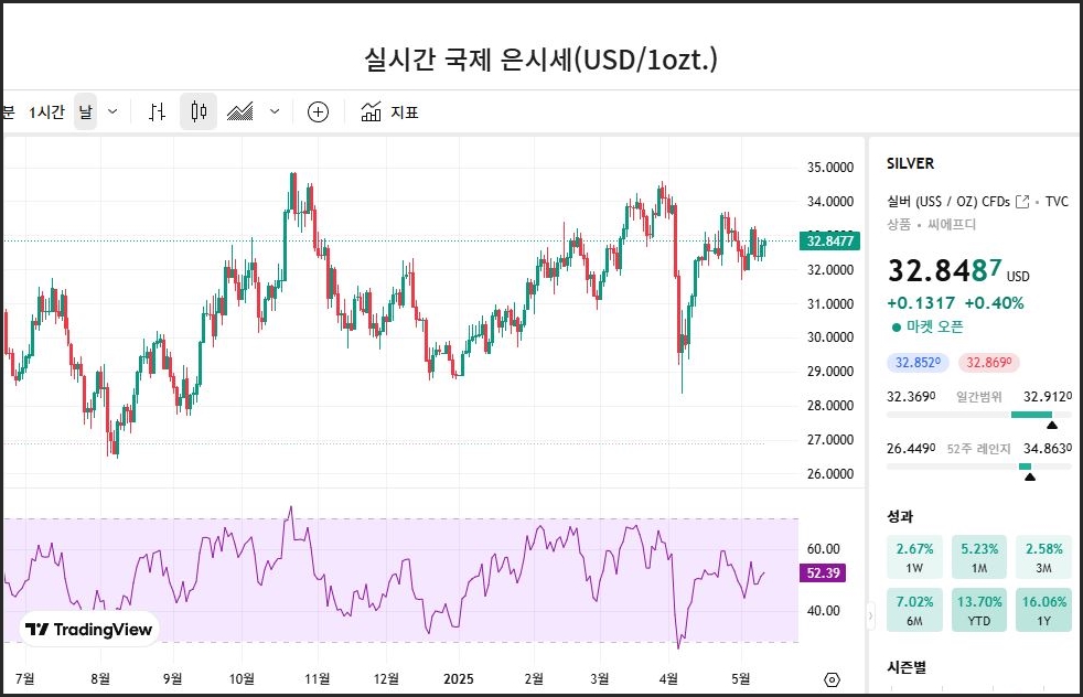 오늘의 국제 은시세[25.05.12]