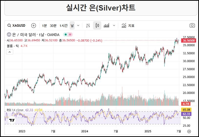 오늘의 국제 은시세[25. 06. 27]